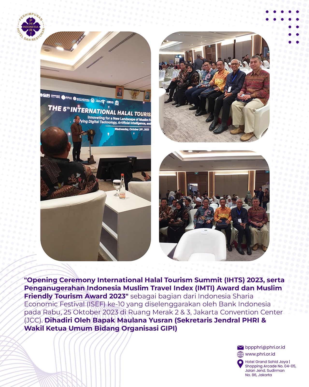 OPENING CEREMONY INTERNATIONAL HALAL TOURISM SUMMIT (IHTS) 2023, SERTA PENGANUGRAHAN INDONESIA MUSLIM TRAVEL INDEX (IMTI) AWARD DAN MUSLIM FRIENDLY TOURISM AWARD 2023 25 OKT 2023